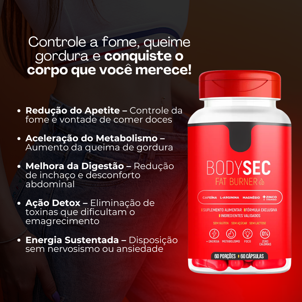 O Bodysec é um aliado científico para o emagrecimento saudável, formulado com ativos que atuam nas principais causas do acúmulo de gordura corporal. Ele oferece uma abordagem completa para quem deseja conquistar uma silhueta mais definida com saúde e bem-estar.